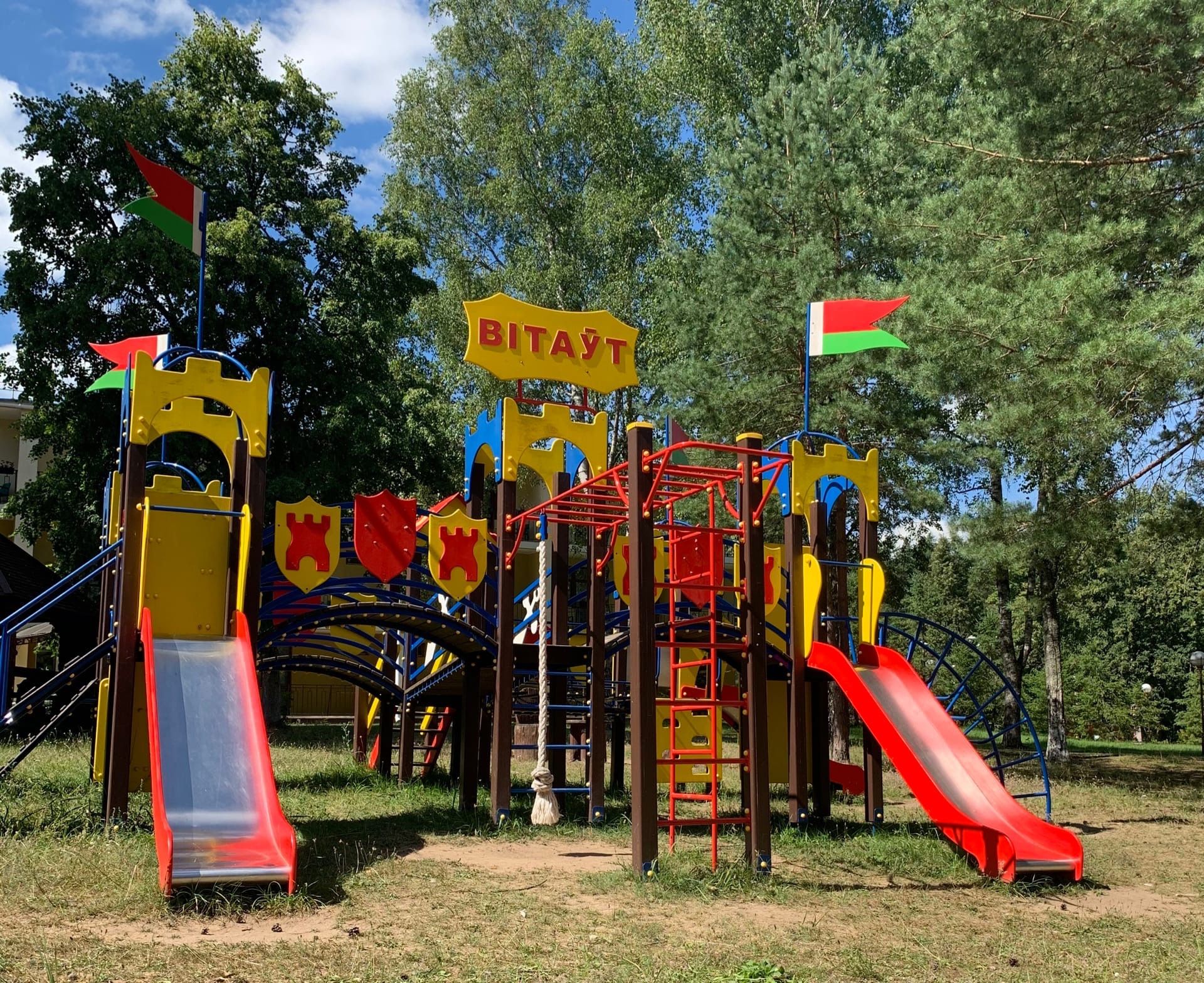 Предоставить детям радостный и полезный досуг - главная задача родителей и важный вопрос при сборе в туристическое путешествие. Не всякие игры, которые выгодны родителям, придутся по вкусу их детям. В санатории «Нарочанский берег» принимают людей от трех лет. Здесь устроены все условия для комфортного отдыха. Детское меню в столовой устроит даже наиболее придирчивых детей, в прокате вы можете взять круги для плавания в озере, а обширная парковая территория вокруг пансионата – истинное наслаждение для маленьких исследователей. Здесь нет машин, бродячих псов и других страхов, которые иногда превращают прогулку с ребенком в большом городе в стресс. Вместо этого находится замечательная детская площадка в тени деревьев, где можно замечательно провести время с любимым ребенком. Места здесь много, чтобы играть и прогуливаться даже большим числом детей. На площадке вы можете кататься на качелях или с горки, слеплить фигуры из песка в песочнице.