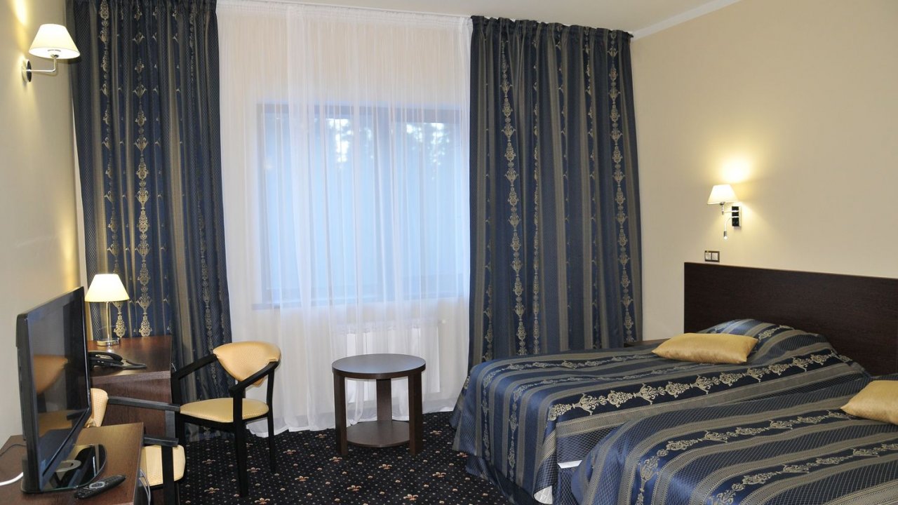 В номере: две удобные отдельные кровати (100х200 см), которые при необходимости легко можно соединить в одну двухспальную (200х200 см), две тумбочки, журнальный столик, два стула и письменный стол, настольная лампа, шкаф с зеркалом, ЖК телевизор, телефон, стеллаж, мини-бар, электрический чайник,   набор посуды, сейф, бесплатный wi-fi, кондиционер